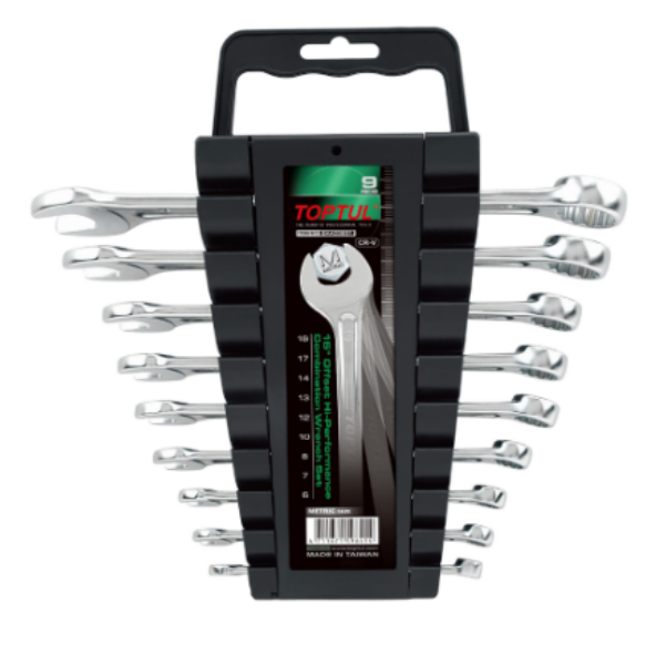The TOPTUL 15° Offset Hi-Performance Combination Wrench Set with Storage Rack (Metric) is a premium-quality toolset designed for professional mechanics, industrial maintenance, and workshop applications. Known for its durability and precision engineering, this wrench set offers excellent performance in both heavy-duty and precision fastening tasks.