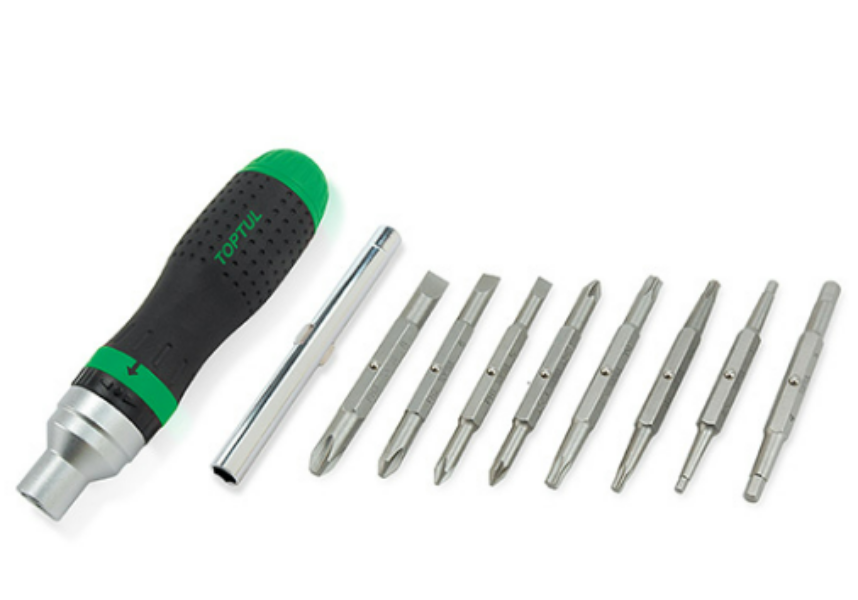 One of the key features of the Toptul Torque Ratchet Screwdriver Set is its adjustable torque control, which helps prevent over-tightening and protects screws, threads, and sensitive components from damage. The reversible ratchet function allows easy switching between clockwise and counterclockwise rotation, making it suitable for both tightening and loosening applications.